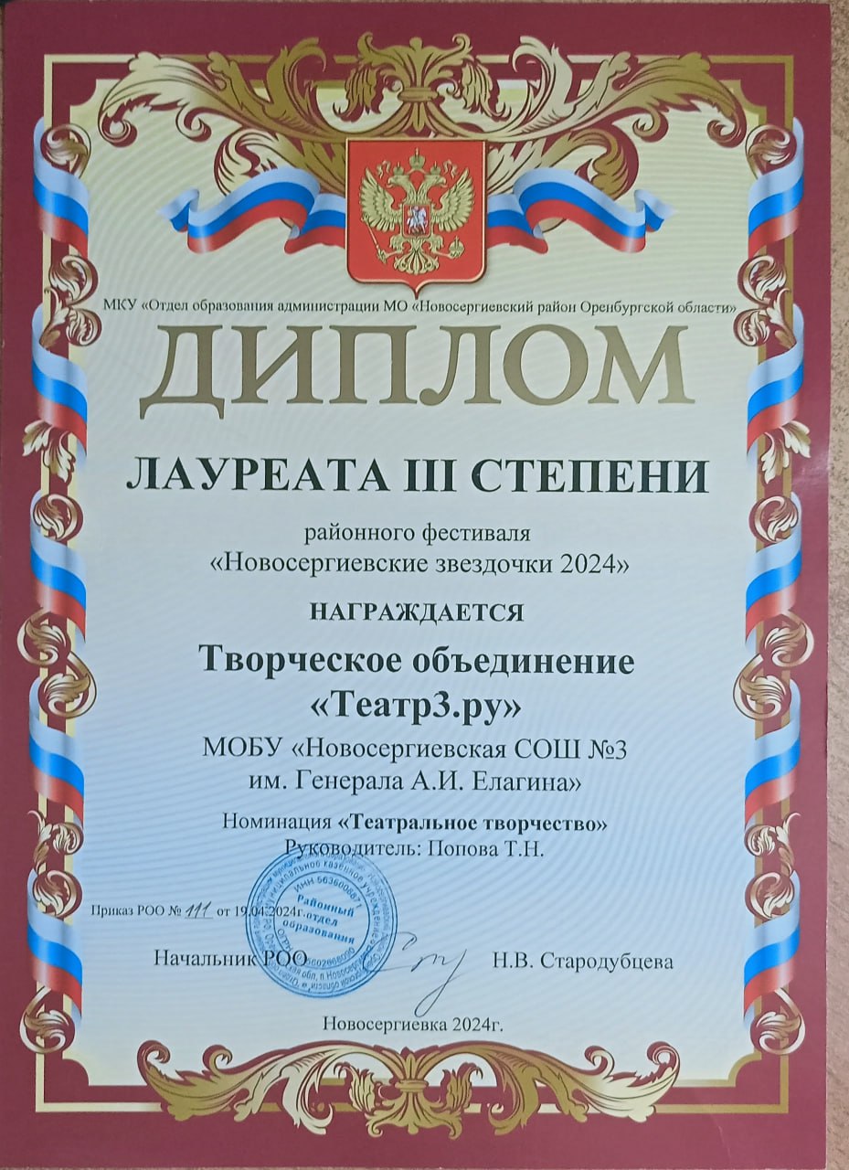 Районный фестиваль "Новосергиевские звёздочки 2024» - лауреаты 3 степени (театральное творчество)